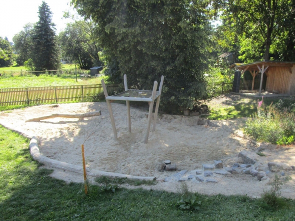 - Auch den neugestalteten Schulhof mit Sandlandschaft und Klettergerüst nutzen wir täglich.
