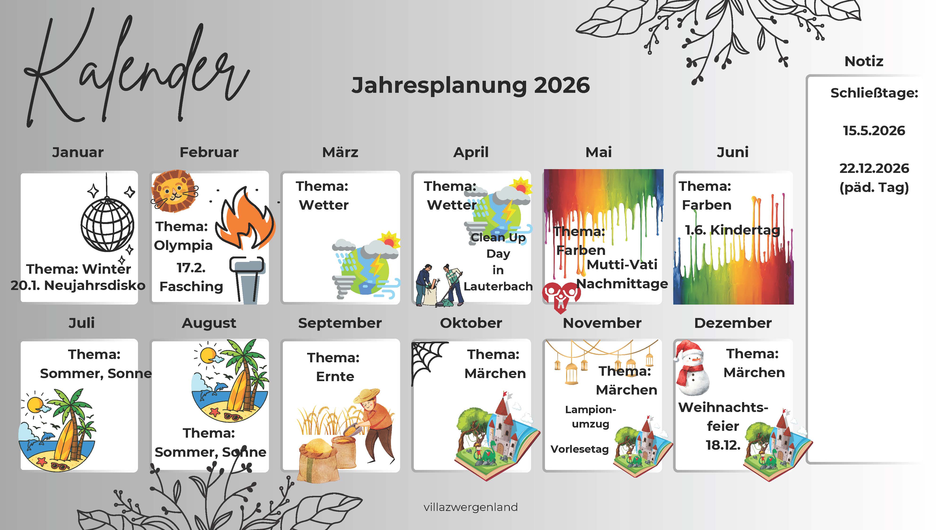 Termine für das Kita – Jahr 2026