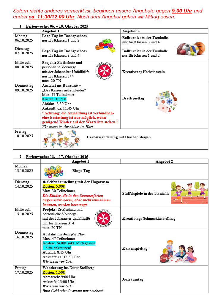hübsch daheim in ihren Stuben.…“ (Heinrich Hoffmann), oder sie nehmen am abwechslungsreichen Herbstferienprogramm vom Hort Farbkleckse teil.