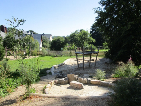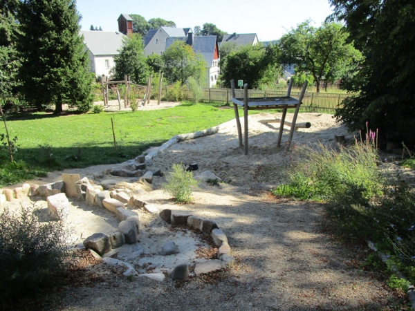 - Auch den neugestalteten Schulhof mit Sandlandschaft und Klettergerüst nutzen wir täglich.